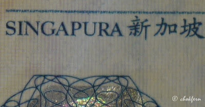 Well, I learn new knowledge that the row of ‘line’ on the top of the Singapore note is actually not just line, but is actually form by a row of letterings!! Can you see the words on it?