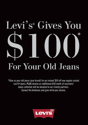 Just bring in your old jeans of any brand and you can get up to $100 from Levi’s® – an instant $50 off any regular-priced Levi’s® jeans PLUS an additional $50 worth of vouchers.