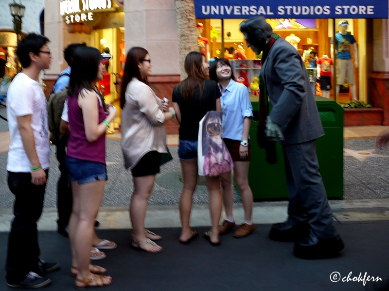 While queuing to take photo, saw Frankenstein going around to scare people…