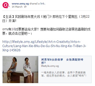 Don’t you envy me? I won the pair of tickets to the performance through omy.sg! I still remembered the last time I watch a drama, which is also performed by the TheTheaterPractice’s with sister – how time flies!