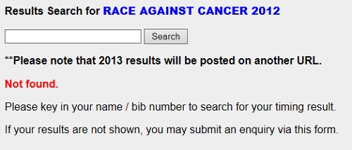 And I managed to find my result on: http://www.digitalracesolutions.com.sg/cgi-bin/common/results/rac2013/search.pl. Somehow the facebook post gave us the wrong information telling us we can get the result on the event website, but the event website only leave us the note **Please note that 2013 results will be posted on another URL. and did not provide us the URL to find our result! 🙁