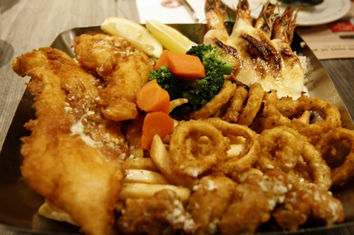 Main dish #2: Manhattan Flaming Seafood Platter – This platter serves up generous portions of hand-battered fish fillets, oysters, calamari and the Manhattan Flaming Prawns. Love the moment when the staff flamed the prawns just beside us~!