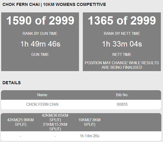 I got my result! I finished my 10km in 1hour 33minutes, not a very graceful result, but consider acceptable consider I did not do any practice/exercise ever since my last running event last year. Target to get a better result for my Run350 run 🙂