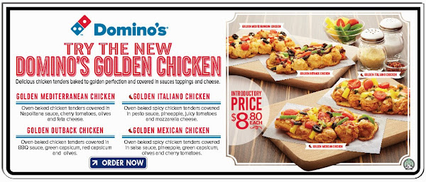 - We now can savour the new Domino’s Golden Chicken (Be patient, scroll down to learn more of this product!)