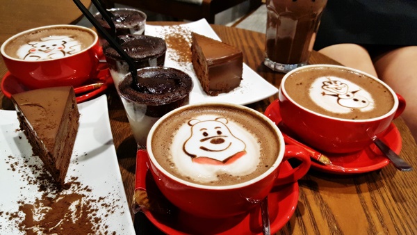 After indulging in the pool of rich chocolate products – my favourite cuppa lava cake, hot chocolate with a cute pooh bear, sharing milk chocolate and dark chocolate cake with Sis and fellow bloggers, and of course the star of the night – newly launch Dark Chocolate Gelato, we were given an assignment. We were to do up a latte art with Chocolate Origin’s new DIY latte art kit.