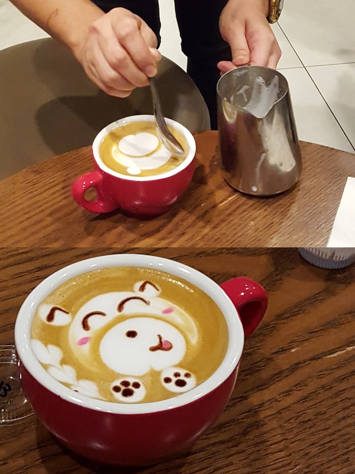 | Wow! I’m seating with so many talented latte art artist. Can you guess which is done by sis? |