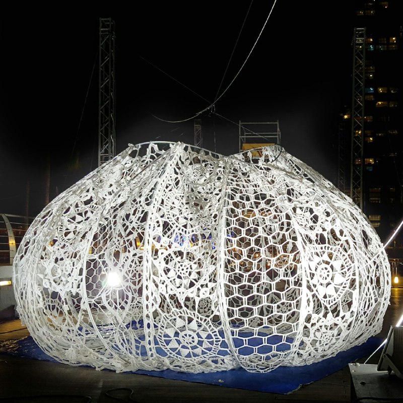 I actually got a pre-preview of this simple installation formed by a colorful cord connecting a few trees while I’m was Pokemon hunting at MBS. Love that this simple, ingenious illumination is able to merge the natural and constructed elements, and how it can create a poetic and powerful image when the wind make it moves, not to mention it’s spectacularly beautiful at nightfall!