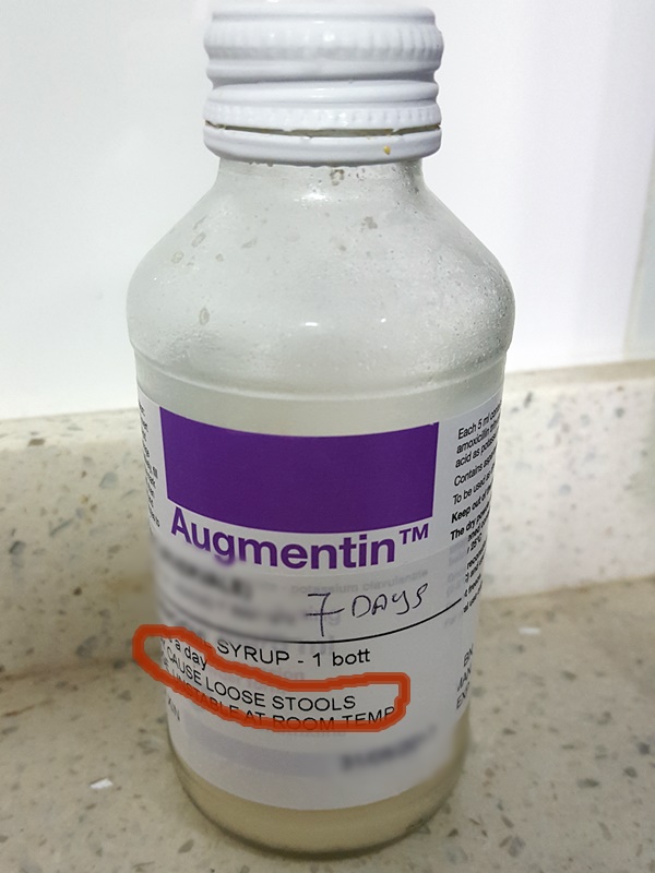 Being told that Kpo Kia was sicked for almost 2 weeks and now with green mucus, the GP suggested to give her antibiotics. Since this is ‘professional advice’ and likely the quickest way to help Kpo Kia recover, we agreed to it. When the nurse dispensed the medicine to us, she warned us the antibiotics ‘might caused a bit of loose stool’.
