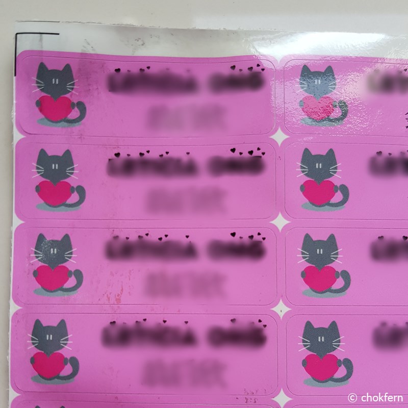 Sent them a photo of my failed attempt to clean the labels, and they replied me on the next day with apology and promise of a replacement. Sure enough, after another 2 weeks of waiting, I got the sheet of 22 replacement stickers in 2 weeks time (because the 44x stickers are spread over 2 sheets of labels and I only complaint about 1 sheet of them having problem =.=”… in actual fact, both sheet of labels are affected, just that the sheet in my complaint email is in a more serious condition).