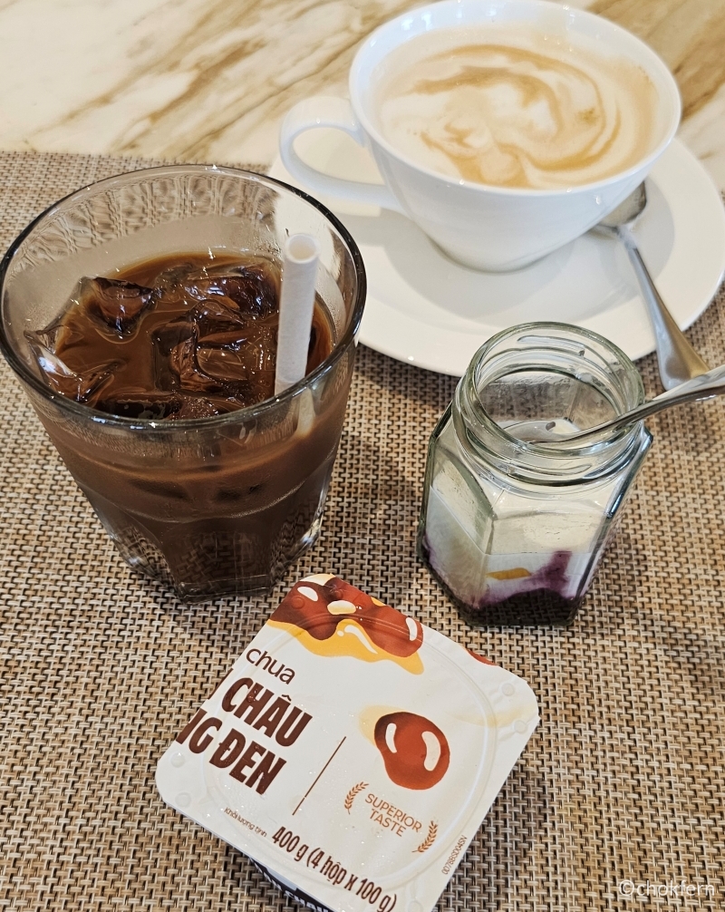 Colleague highly recommends the ice Vietnamese coffee, so risk trying it even though I already have a cup of cappuccino on my table.