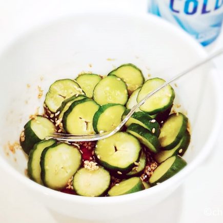 Sunomono (Japanese Cucumber Salad) 酢の物 Ingredients: 1 Japanese cucumber Salt Seasoning 1 tbsp vinegar 1/2 tbsp soy sauce 1/2 tbsp sugar 1/2 tbsp sesame seeds 1 tsp sesame oil Directions: Rub cucumber with salt and wash with water to smooth out the prickly surface of fresh cucumber. Cut cucumber into …